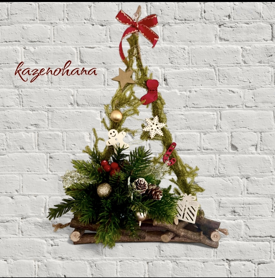 今回はクリスマス迄ずっと飾れる”ツリー型のドア飾りとX’masアレンジメント”