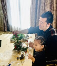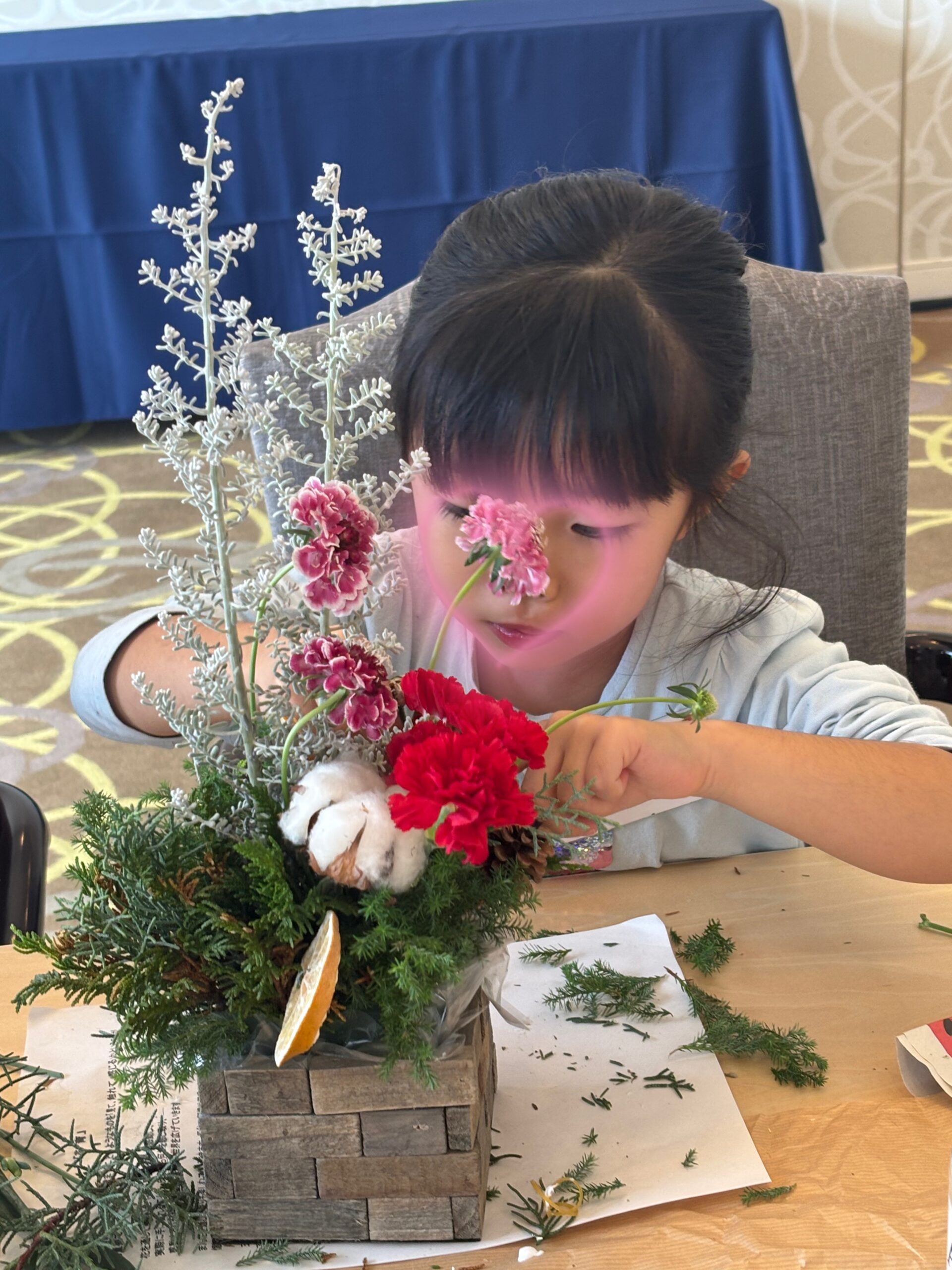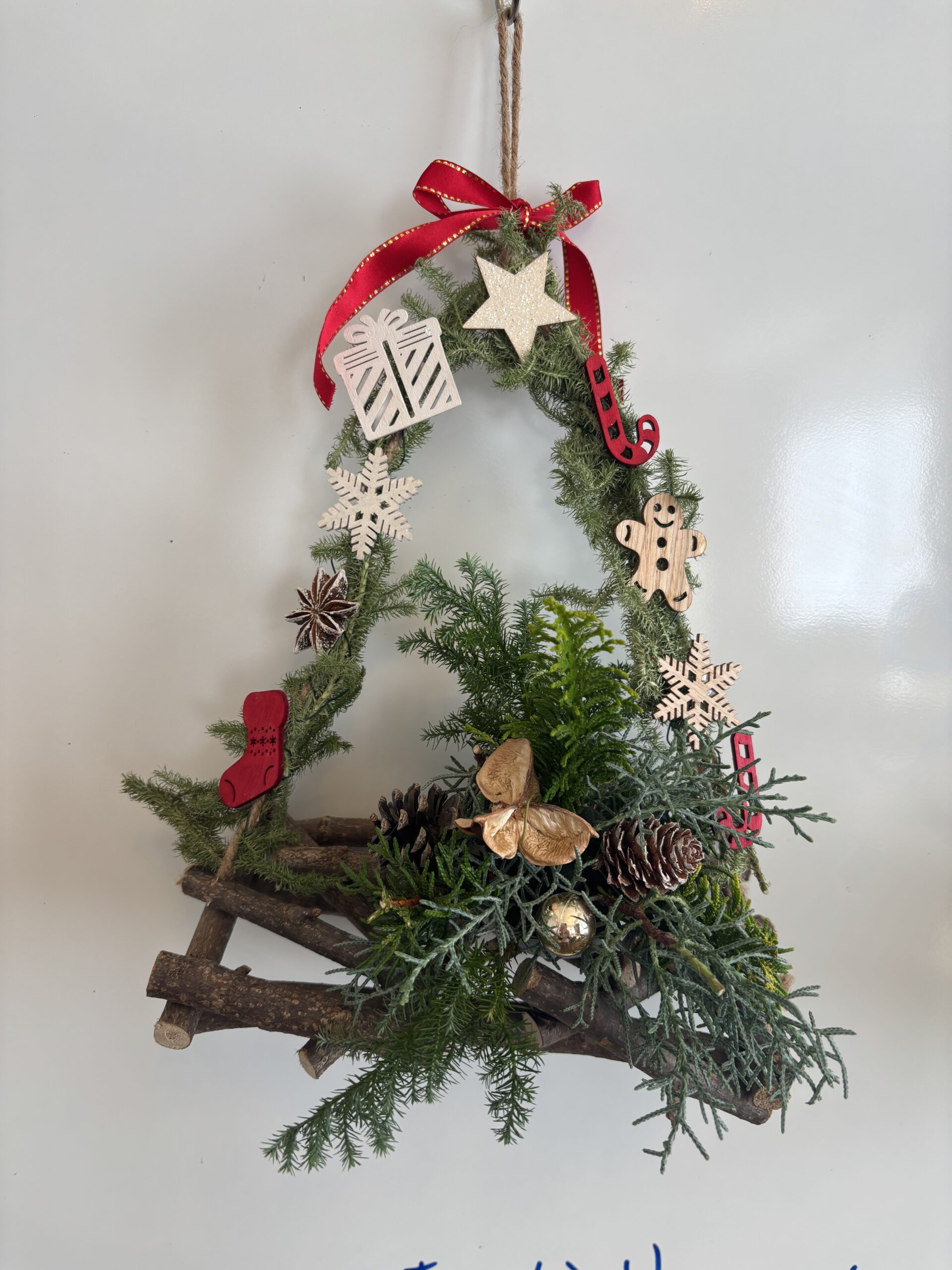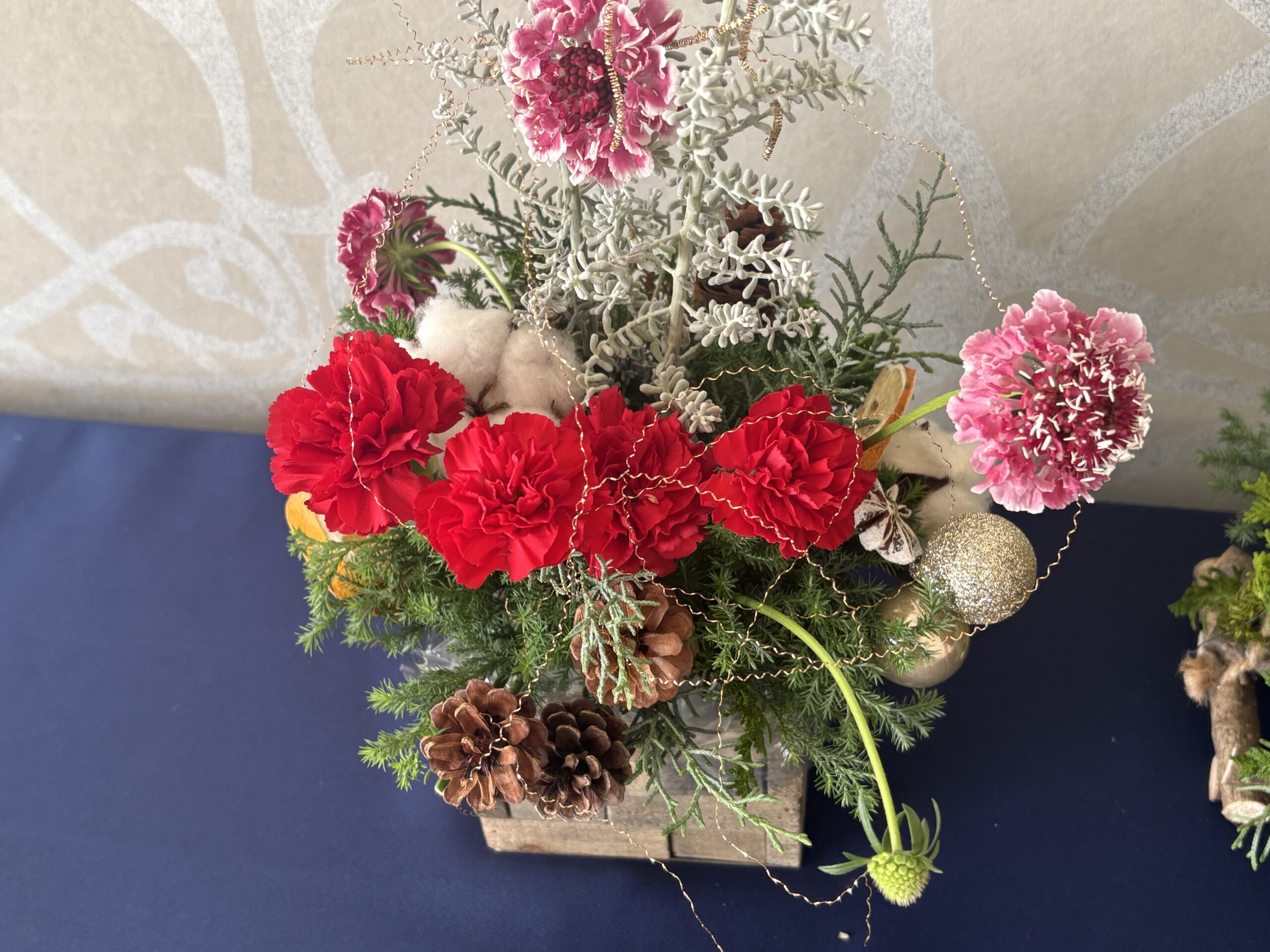 自由にさしてアレンジしてクリスマスアレンジメントを作ってもらいました。