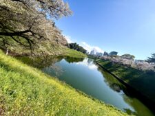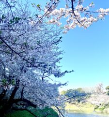 九段下から皇居のお堀に差し掛かると、それは見事な桜の風景が見えて